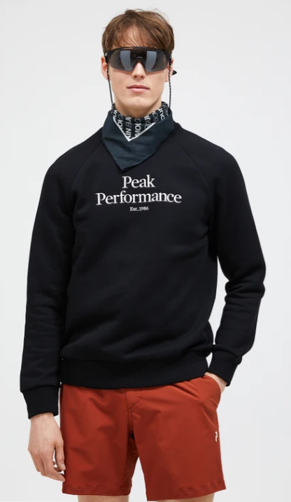 Peak Performance Original Crew miesten collegepaita musta, tyylikäs ja monikäyttöinen collegepaita, joka yhdistää klassisen muotoilun ja korkean käyttömukavuuden.