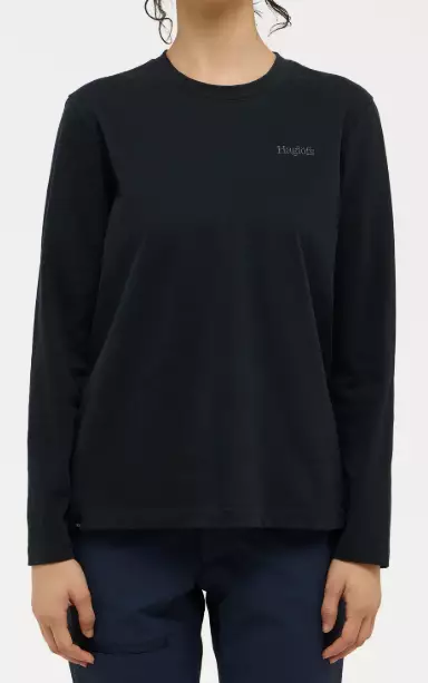 Haglöfs LS Tee naisten pitkähihainen paita musta, pitkähihainen t-paita, joka on mukava niin metsäpolulla kuin kaupungissakin.