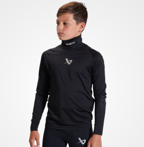 Bauer LS Neckprotect JR kaulasuojapaita. Teknistä materiaalia oleva aluspaita pitkillä hihoilla. Paidassa on valmiiksi hyväksytty kaulasuoja.