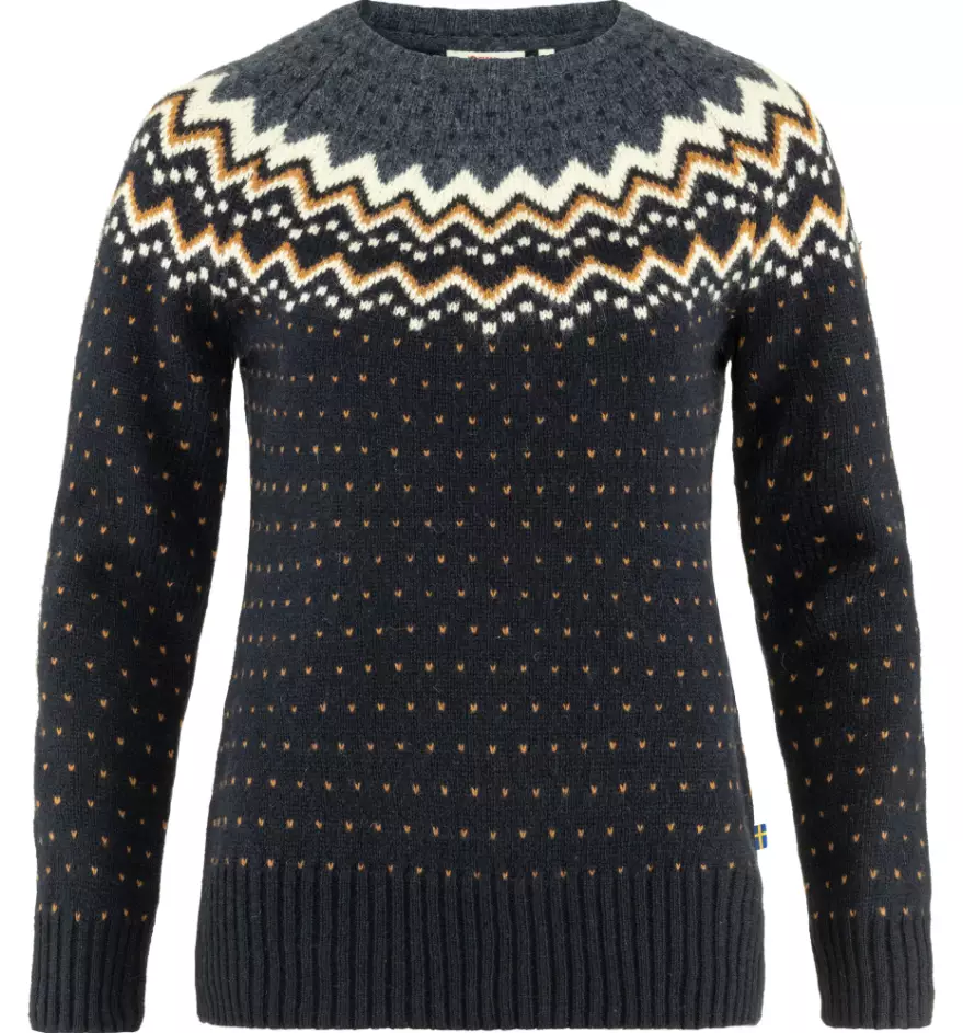 Fjällräven Övik Knit Sweater naisten villapaita tummansininen, klassinen, lämmin ja tyylikäs naisten villapaita, joka on valmistettu 100 % vastuullisesti tuotetusta villasta. Tämä pehmeä ja hengittävä villapaita tarjoaa luonnollista lämpöä ja mukavuutta niin arkeen, ulkoiluun kuin retkeilyyn, täydellinen valinta kylmien päivien luottovaatteeksi.