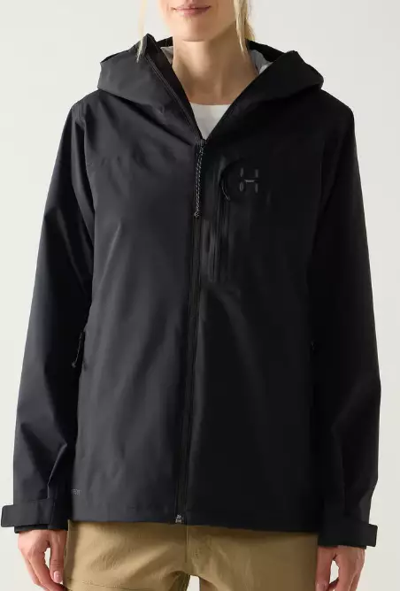 Haglöfs Ozka Proof Jacket naisten ulkoilutakki musta, monipuolinen ja luotettava kuoritakki, joka on suunniteltu suojaamaan vaihtelevissa sääolosuhteissa. Tämä vedenpitävä ja hengittävä ulkoilutakki sopii erinomaisesti retkeilyyn, vaelluksille, ulkoiluun ja aktiiviseen arkeen, kun tarvitset tehokasta suojaa sateelta ja tuulelta.