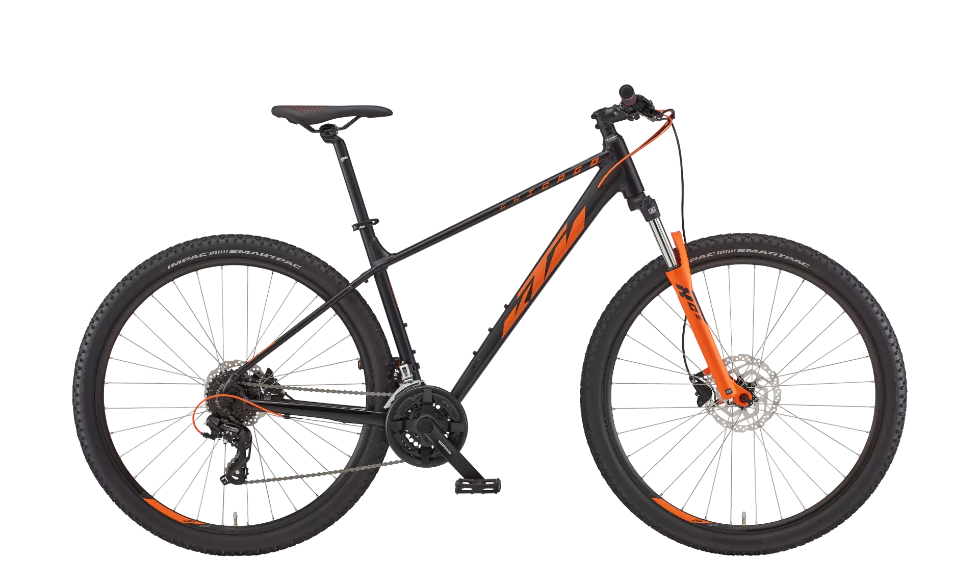 KTM Chicago on suunniteltu edulliseksi mutta luotettavaksi MTB:ksi, joka toimii arjen ja viikonlopun retkillä. Pyörässä on 29 tuuman renkaat, jotka rullaavat sujuvasti epätasaisella maastolla, ja tehokkaat Tektro HD-T275 -levyjarrut tuovat turvallisuutta vaativissakin tilanteissa.