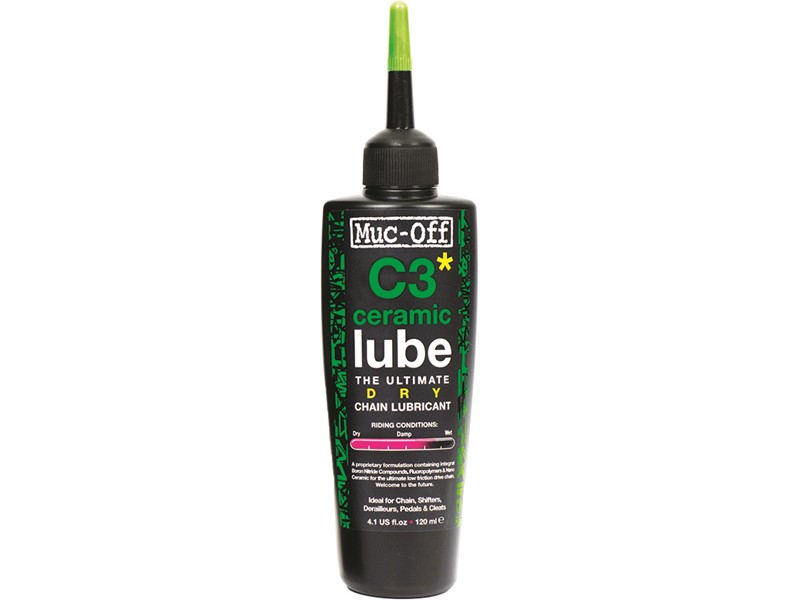 Muc-Off Dry Lube C3 Ceramic 120ml ketjuöljy. Sopii kuiviin olosuhteisiin. Ketjuöljy, joka sisältää keraamisia aineita. Tämä tuottaa ketjuun pintakerroksen, joka kestää erityisen pitkään.